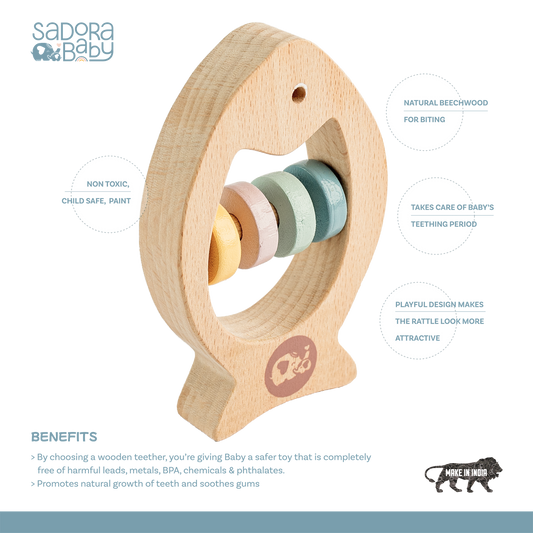Mr. Fish Wooden Teether with Rattle