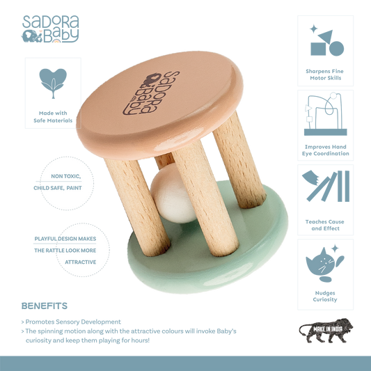 Wooden Cylinder Roll n Rattle
