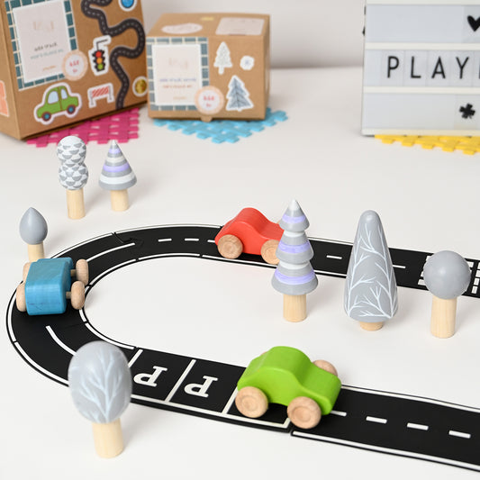 Wooden Wild Track Artic - Set of 12 Tracks, 7 Artic Trees & 3 Cars