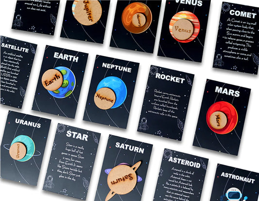Solar System Flashcard with Space Board Activity (Contain Wooden Planets)