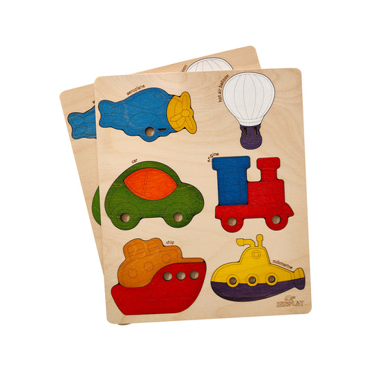 wooden Transport – Wheels & Wings Puzzle Board