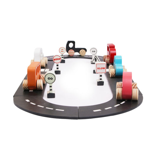 Wooden Emergency Vehicle set with Traffic Signal & Roads