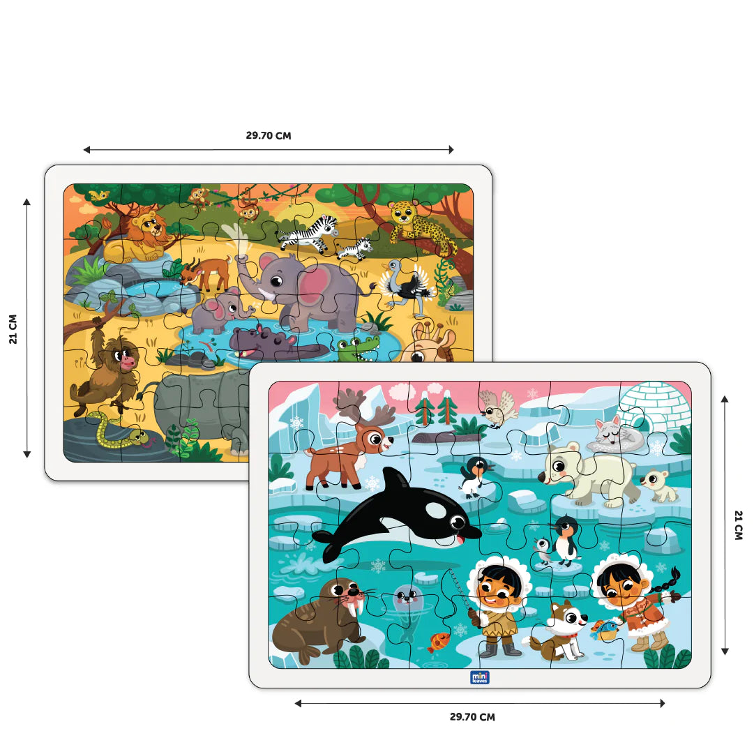 2 In 1 Wild Safari Animal And North Pole Animal Wooden Puzzle