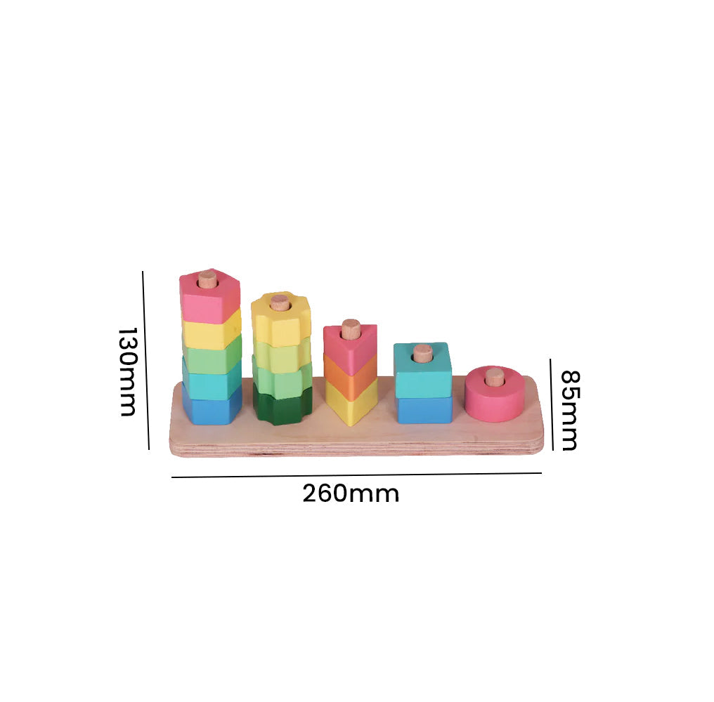 Our 3 in 1 Wooden Shape Stacker will Help your Child to Learn How to Sort and Stack Different Shapes. It will also help your Little one learn about Different Colors and Numbers from 1 to 5.