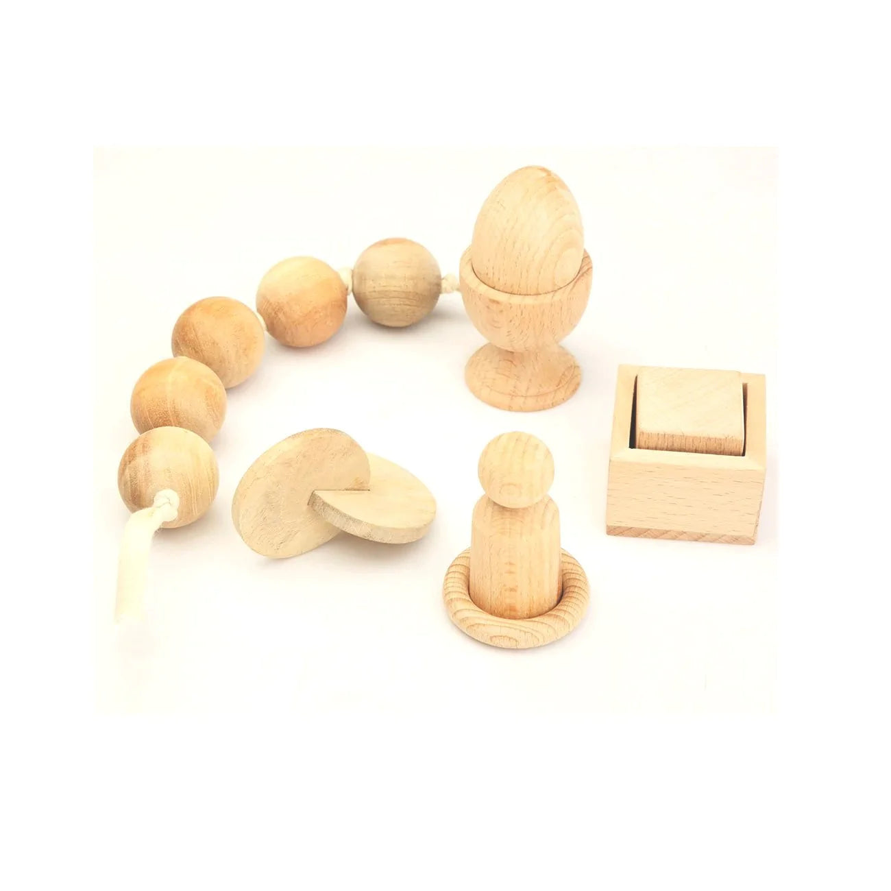 This Montessori set ensures to aid and suffice your child's needs from 4 months to 8 months and sometimes beyond.  We have put this set together to ensure the optimum guidance to your child's developments like grasping, hand-eye coordination, spatial awareness, wrist movements, fine-motor development, concentration and understand shapes.