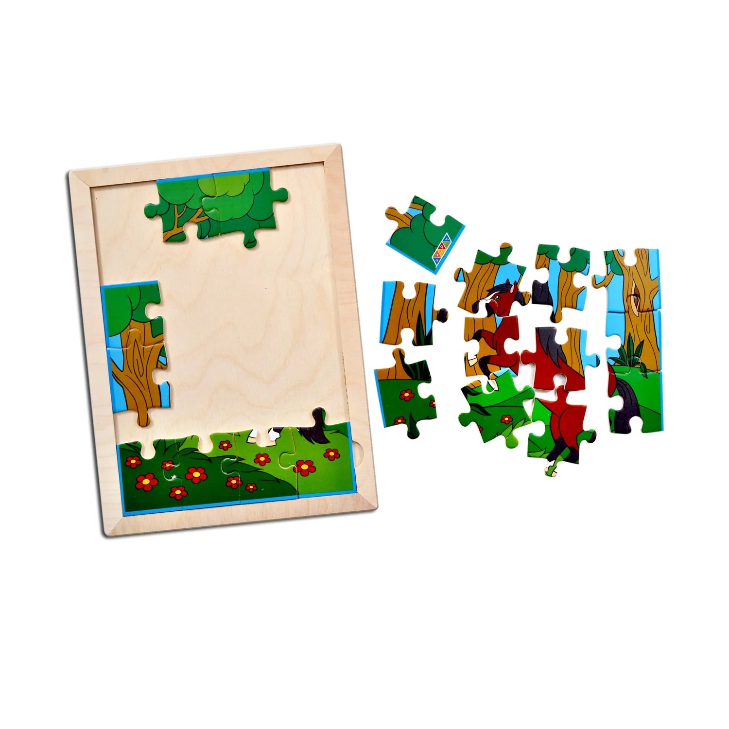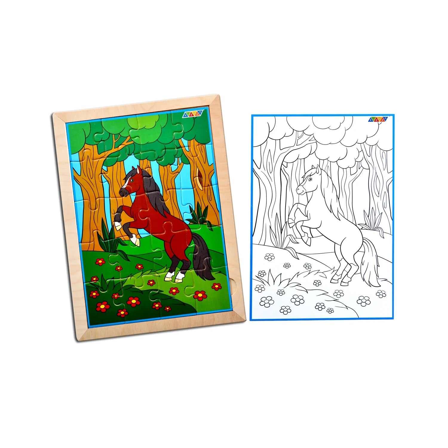 1 puzzle set (Horse) with wooden tray and colouring sheet