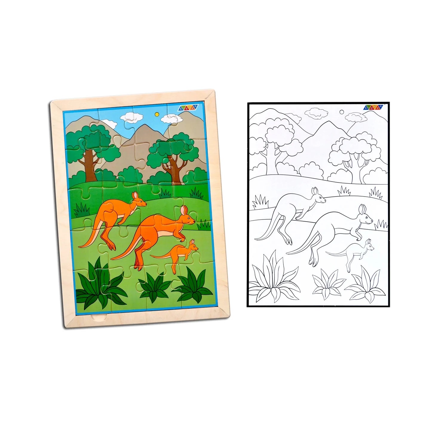 1 puzzle set (Kangaroo) with wooden tray and colouring sheet