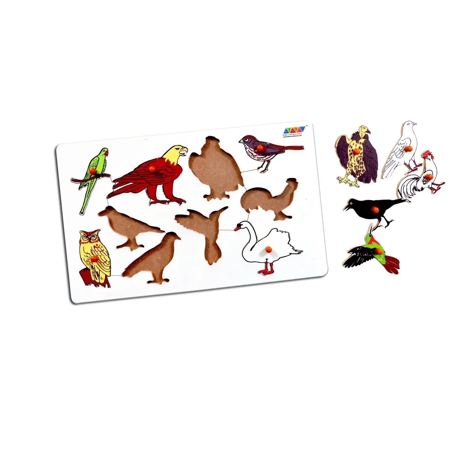 • Each bird picture has a knob on it so that a child can remove and replace the picture in the same proper position