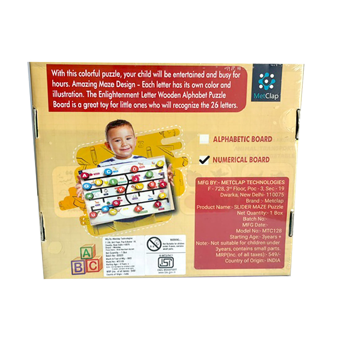 • The toy consists of a colorful maze with sliding elements that reveal numbers as children navigate through the maze.