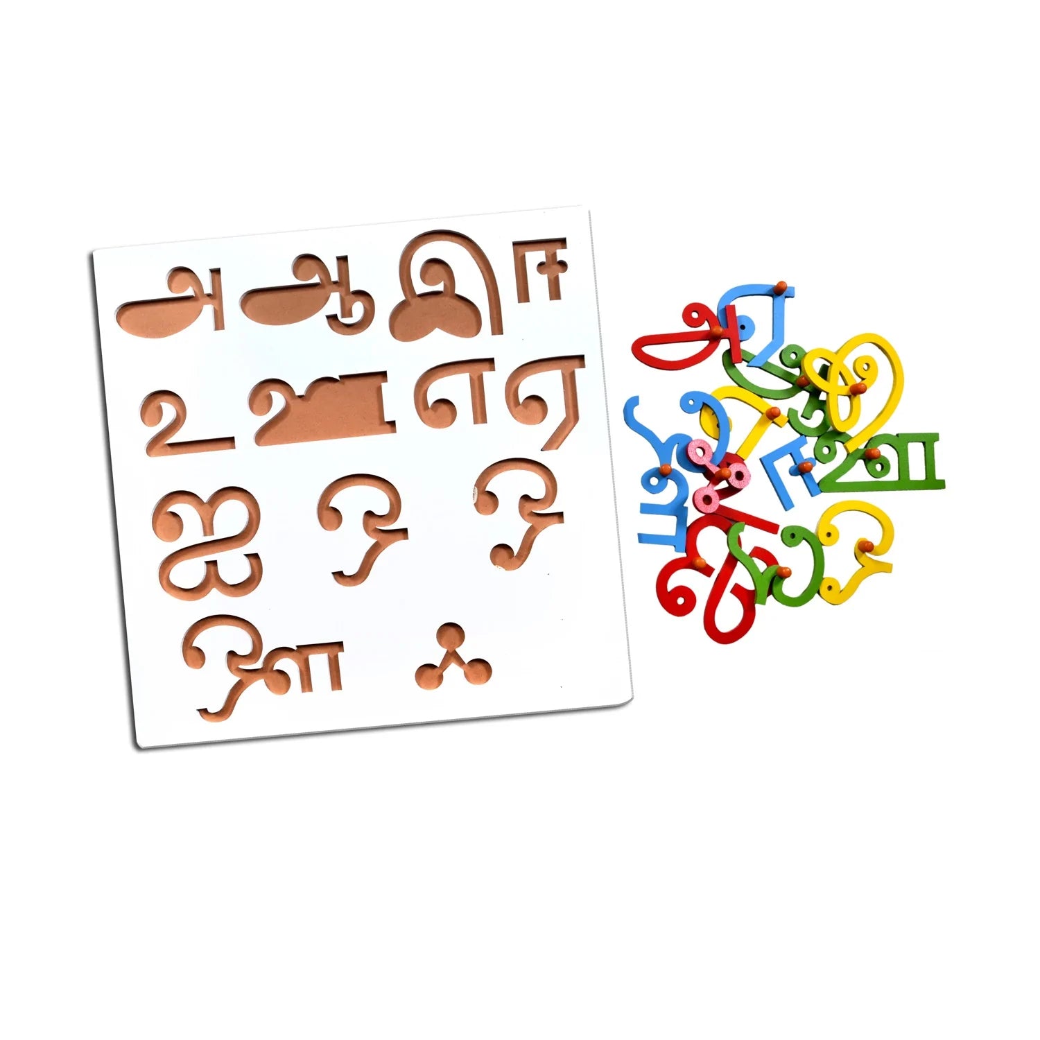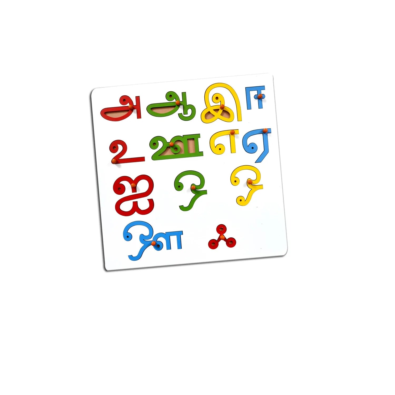 • Tamil Vowels alphabet have been placed on the wooden base each vowels has a nob on it so that a child can remove the alphabets and put it in the some position