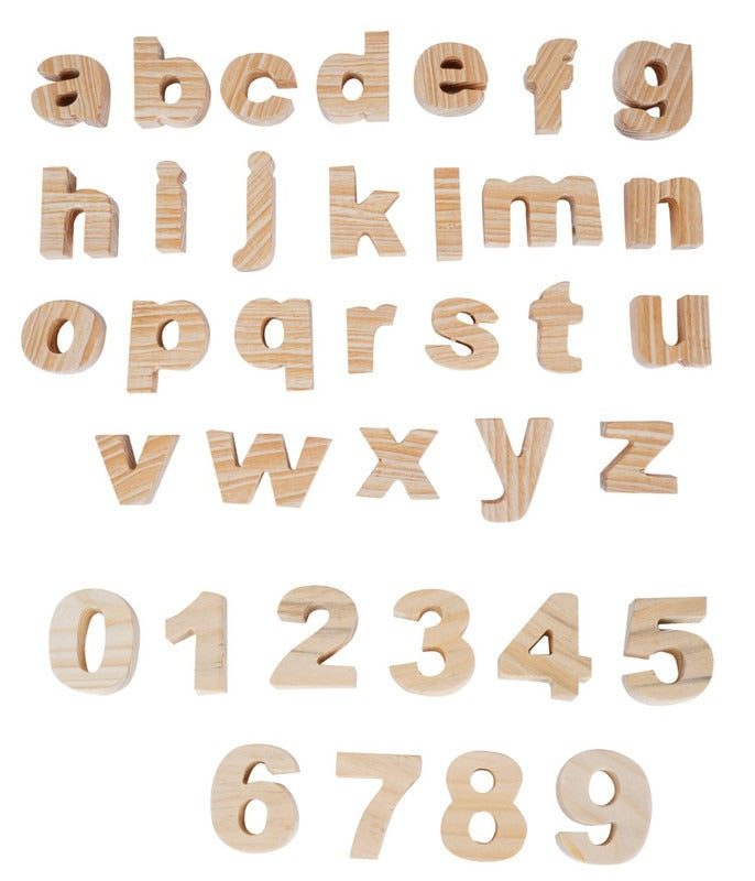 Wooden Alphabets Uppercase, Lowercase & Numerical Numbers - Set of 63 pieces