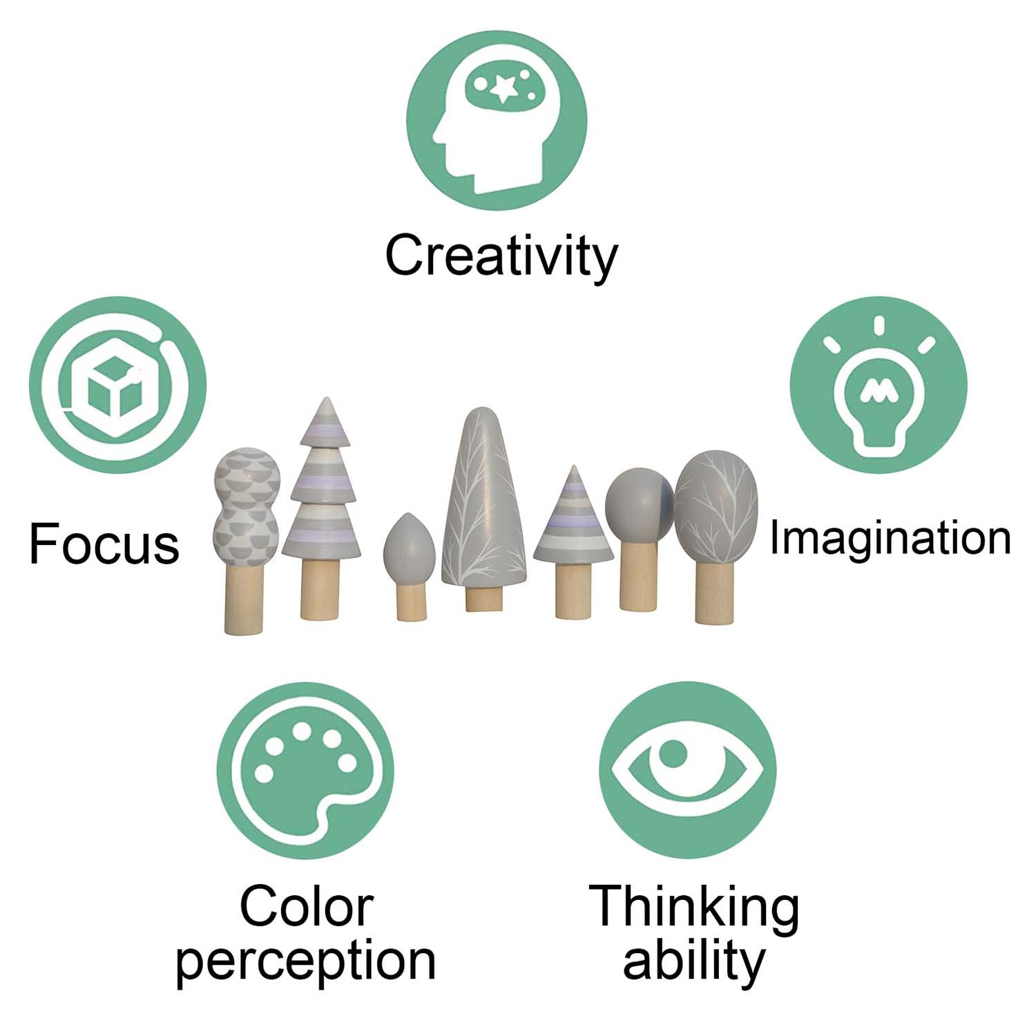 Wooden Arctic Forest Tree Toy Set Contains Unique Wooden Tree Designs in Modern Colours and Fashions at All Times. Parents and Children can Learn Together to Recognize Different Trees, Calculate, Match, Make Patterns, Play Games, and Create Scenes for Your Story. These Trees have Endless Game Ideas.