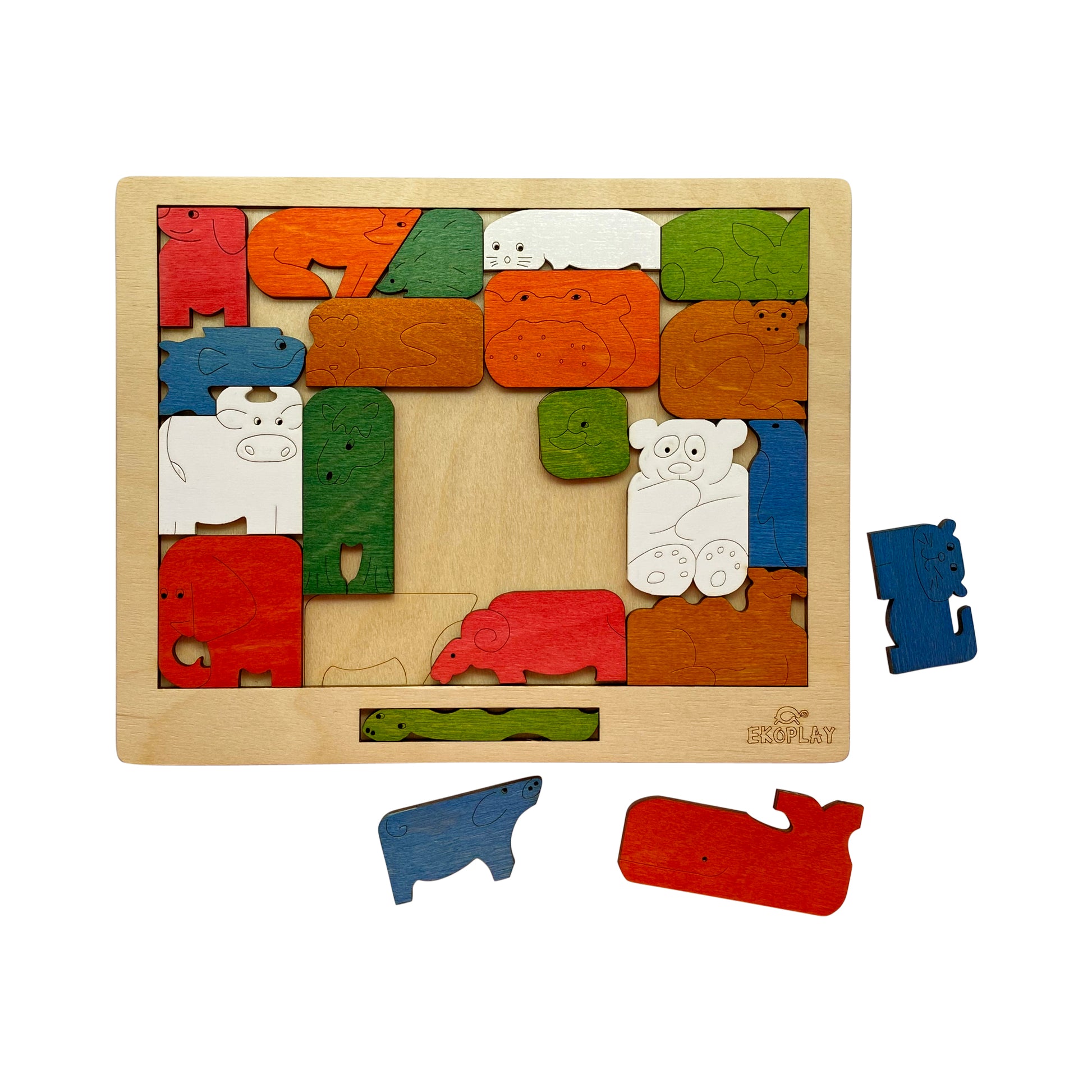 1 Wooden Brain Teaser Animal Fun Puzzle Board with 21 Pieces