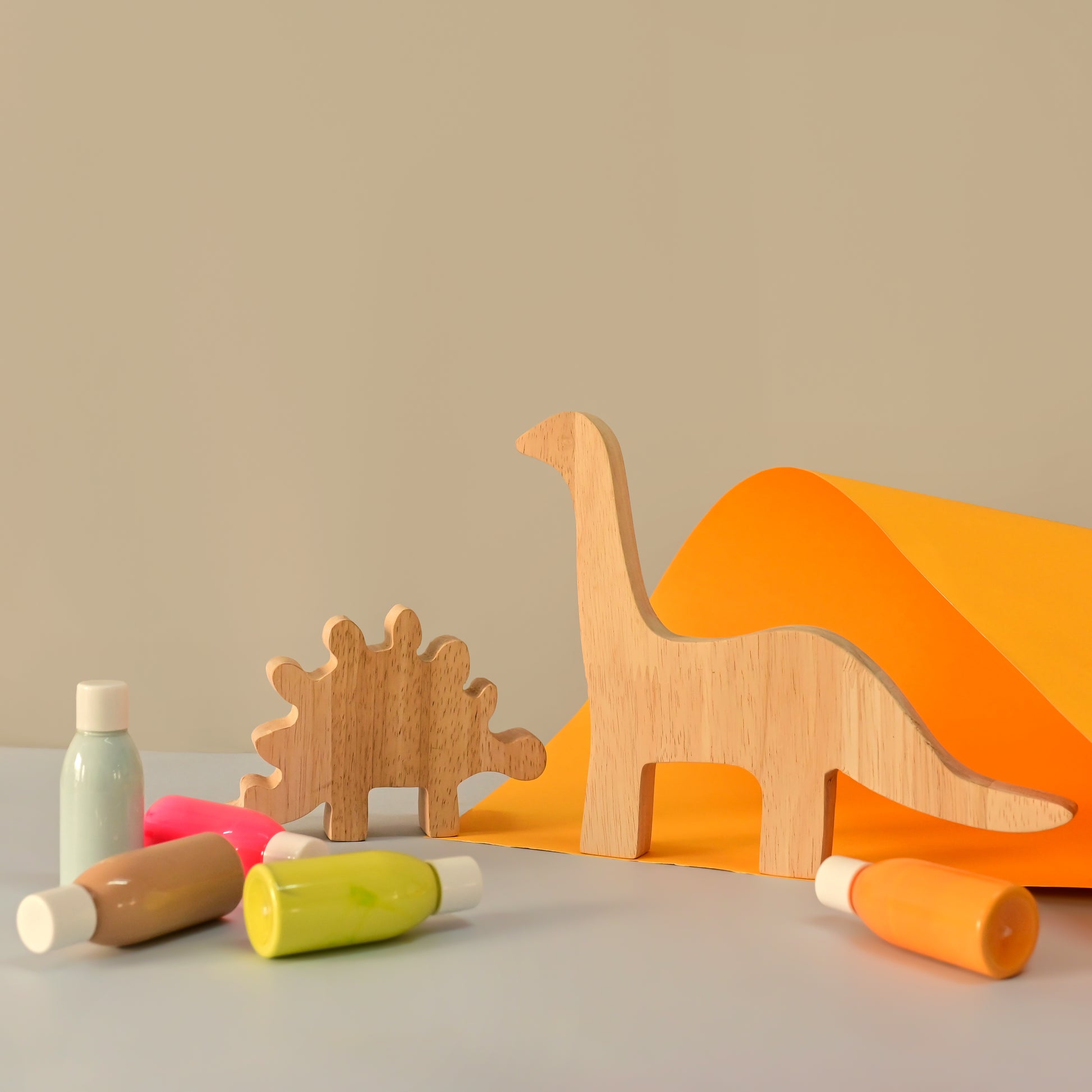 Wooden DIY Dino Kit Set Encourages Kids to Create DIY Different Colors Dinosaurs Scenes. The Painting Dinosaurs can not only Improve Children's Handmade Ability, But also Let Children know Dinosaurs and Recognize the Colors and Color Combinations.