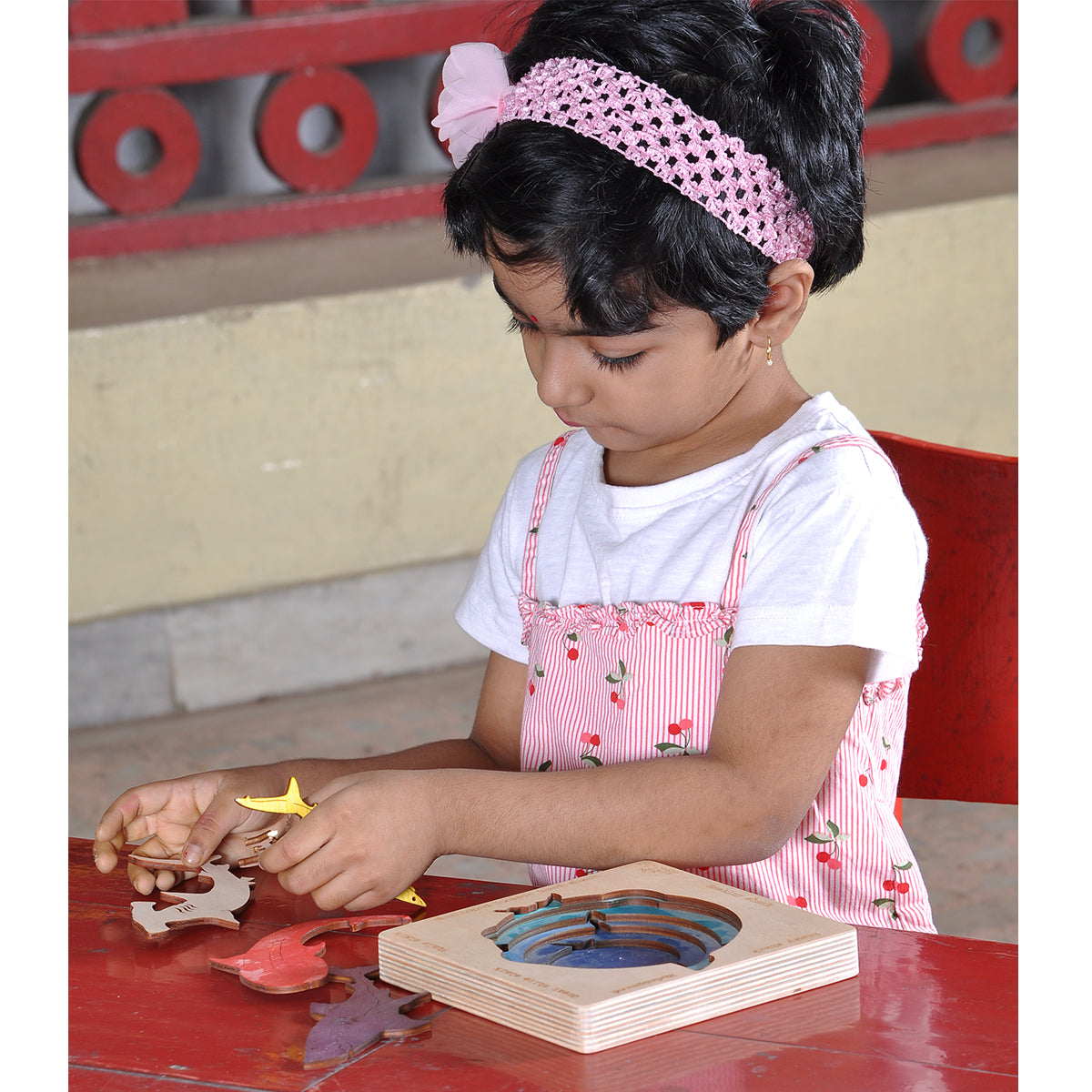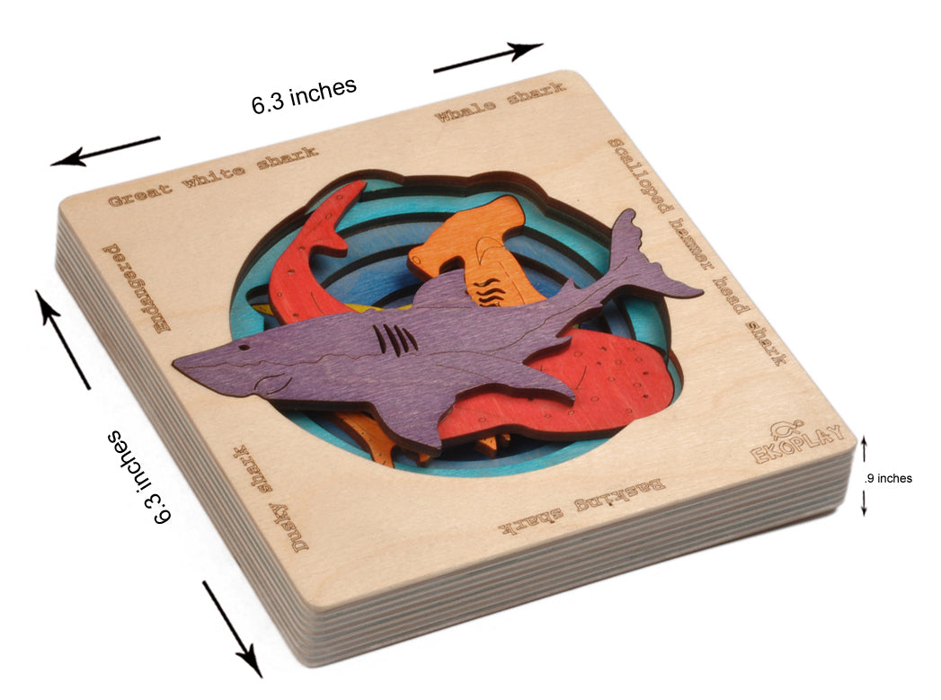 Wooden Endangered Sharks Puzzle Board helps the Kids Learn about the 5 Endangered Sharks and Encourages them to Converse about how Environmental Issues Impact Sea.