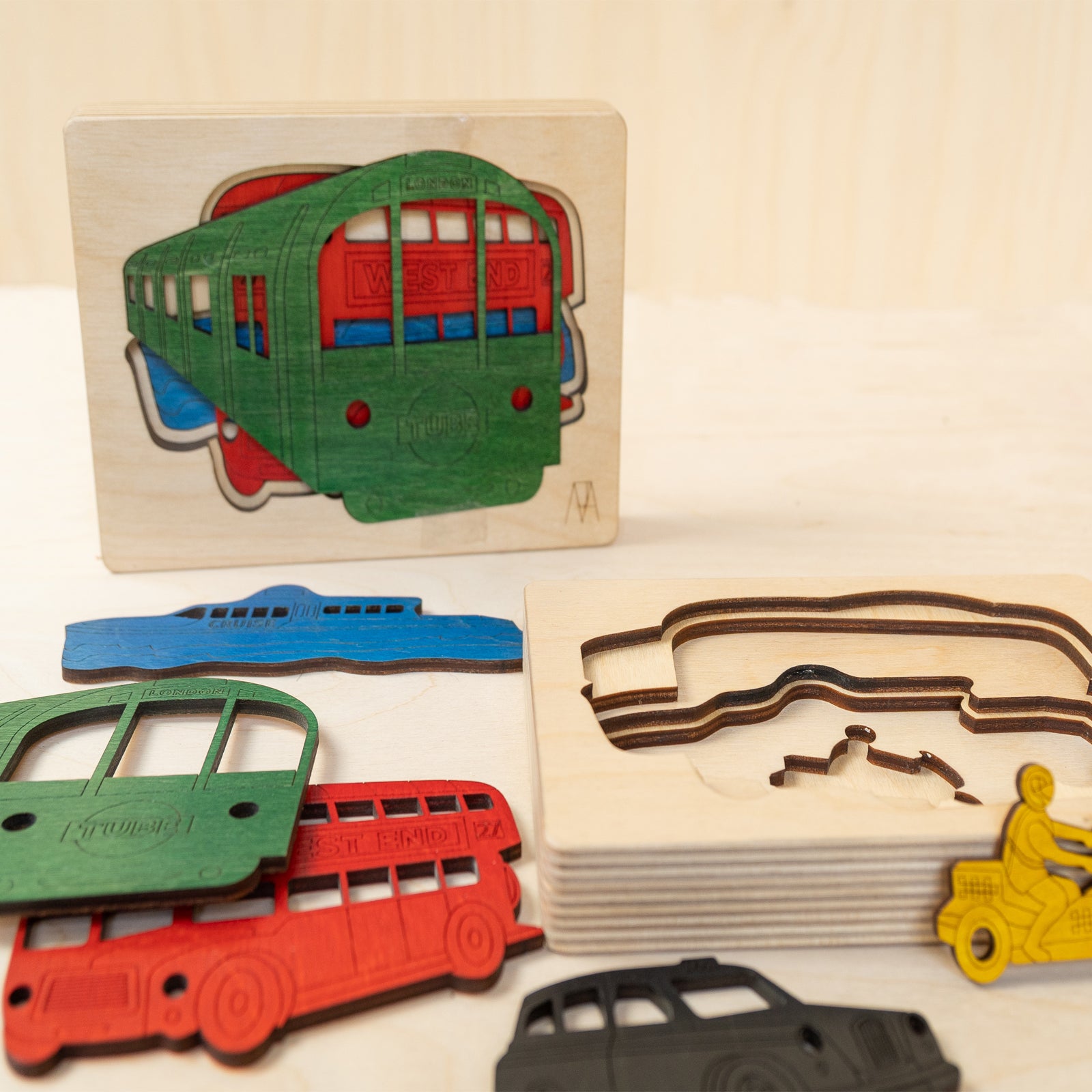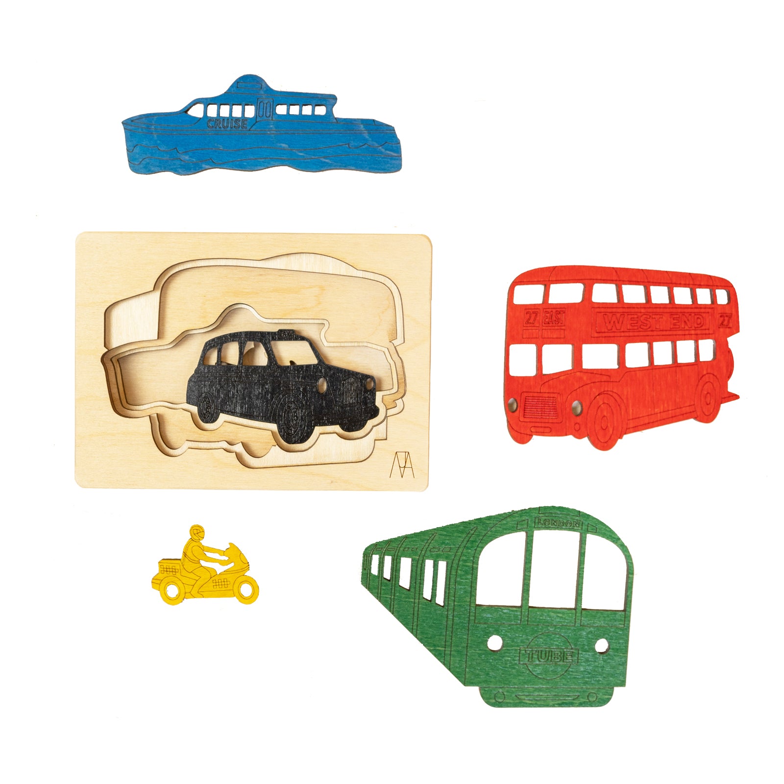 1 Wooden London Transport Puzzle Board with 5 Pieces.