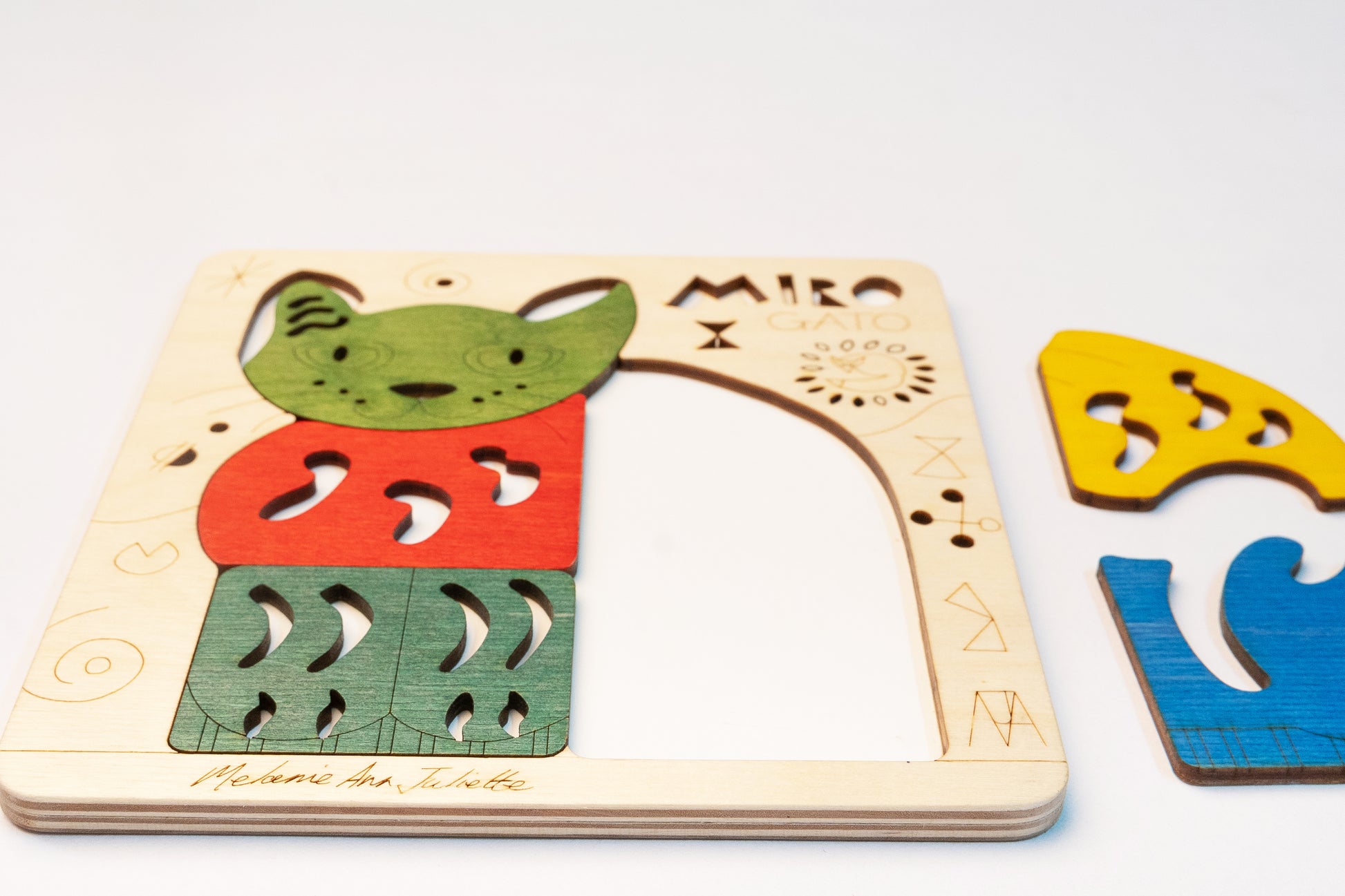 1 Wooden Miro Gato Puzzle Board with 6 pieces