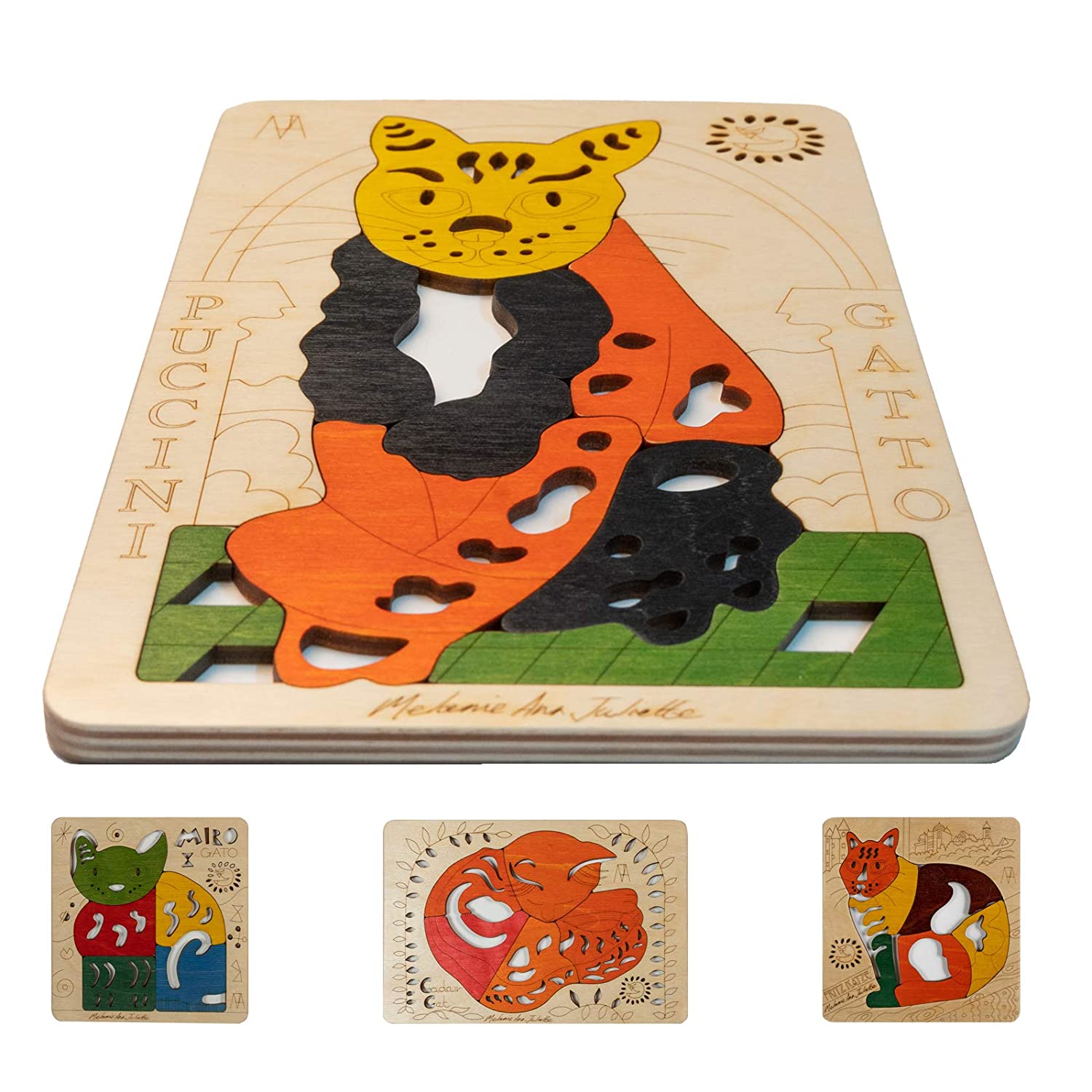 1 Wooden Puccini Gato Puzzle Board with 9 pieces