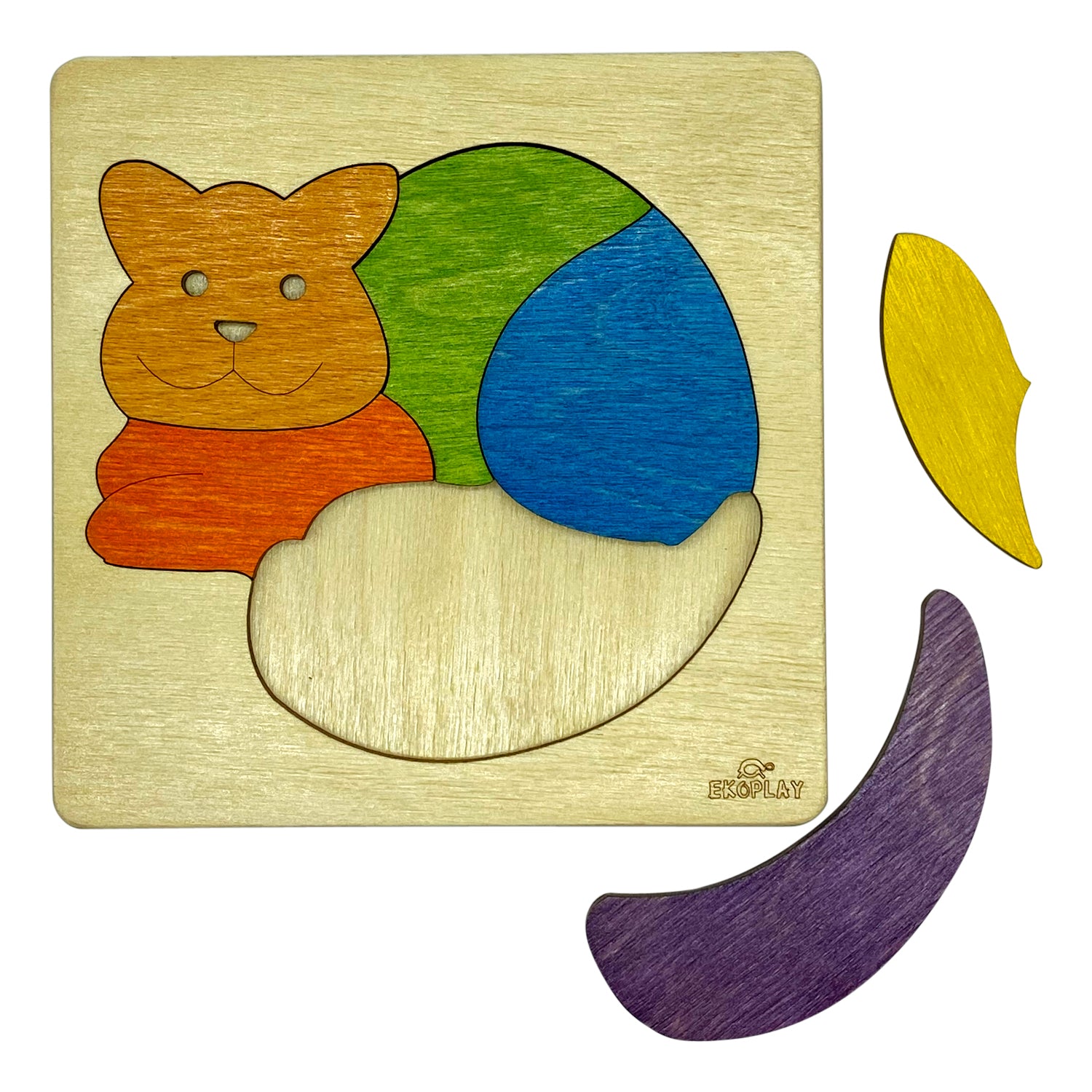 The Wooden Rainbow Cat Puzzle Board depicts the Cat which makes Great Pets and is Very Independent. This Puzzle improves Children's Spatial Activity and Creativity.