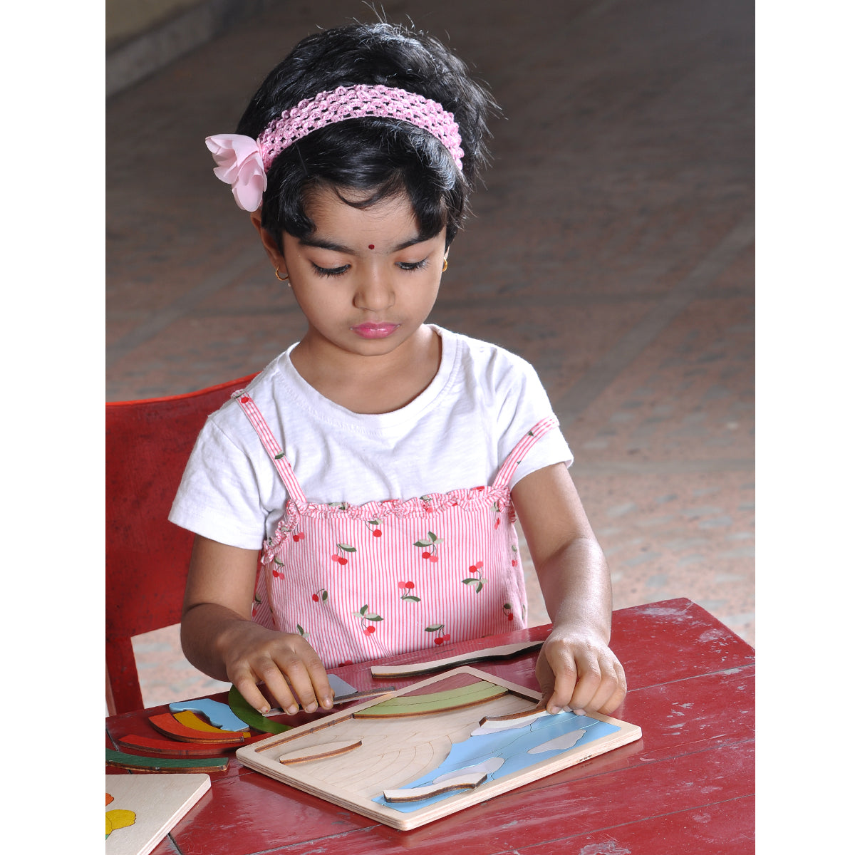 Wooden Rainbow Puzzle Board Help the Child Learn the Colors of the Rainbow. This Puzzle Board helps in Developing Fine Motor Skills.