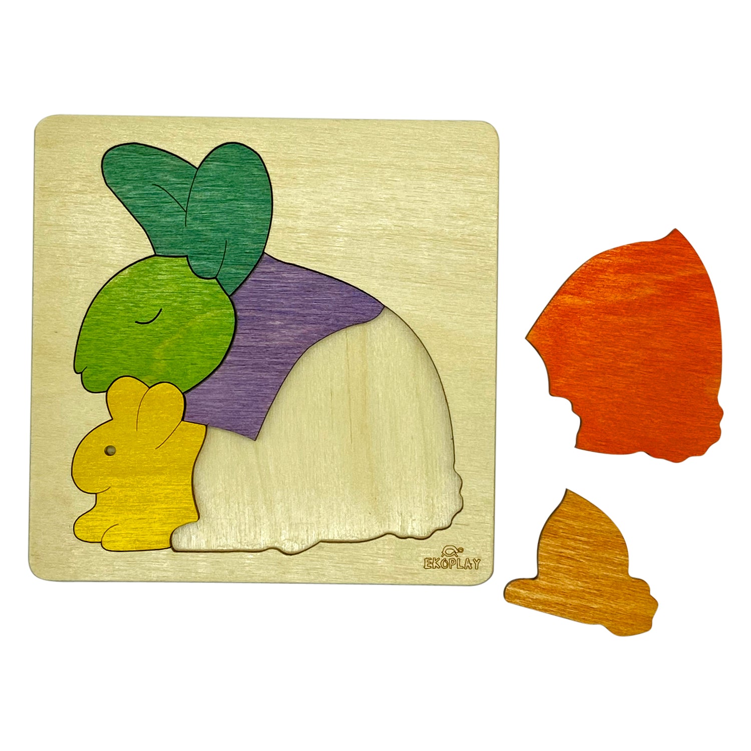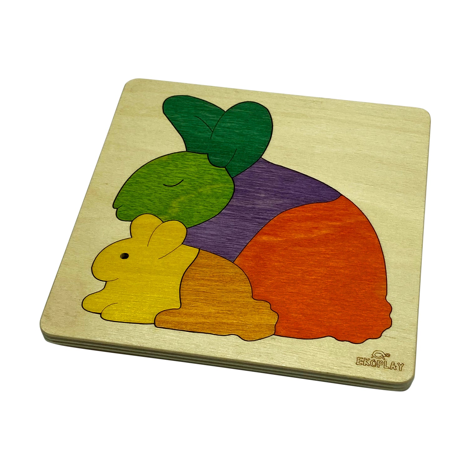 The Wooden Rainbow Rabbit Puzzle Board depicts the Mother and Baby Rabbit Puzzle which has a Carrot to Chew on and makes Great Pets. Rabbits love to be Cuddled and Stroked when approached in the right way.