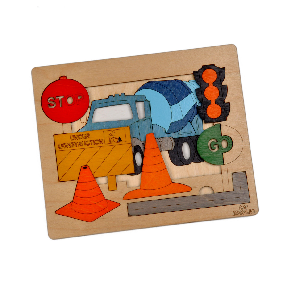 Wooden Road Construction Puzzle Board Help the Child Understand the Pros and Cons of Construction Work and Will allow them to Learn to Think how their Surroundings are Created and Create an Impact on Nature.