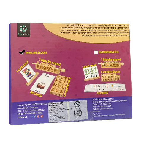 Wooden Spelling Blocks is a Portable Toy set is easy to carry and play with. It can Keep the Kids occupied and off the screens for a long time. Playing Word-Matching games can Inspire kiddos'abilities in Spelling, Pronunciation,and Word. it helps to develop their brain and memory skills.it's a fascinating educational toy for kindergarteners and preschoolers.