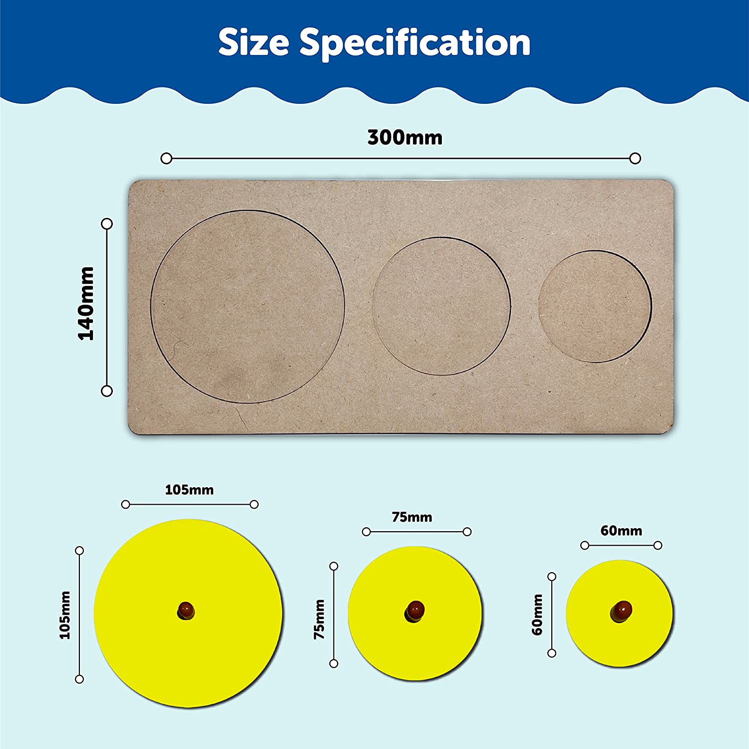 The Wooden Three-Round Shapes Peg Puzzle Encourages Kids to Learn about the Three Different Shapes. This Puzzle Increases the Ability to Hold the Things with the Thumb and the Index Finger, which Becomes Stronger.